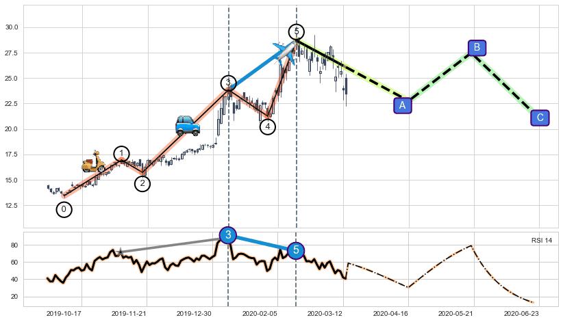 ➢ AI预测: 假定反转启动后, 第❷目标位置(2020-05-12, 26.15)