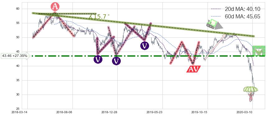 ♘ 阻力价格位43.46,可信任强度74.67%,距离最后交易2020-03-13形成的收盘价格34.13相差 +27.35%