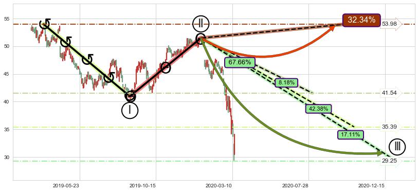 ➣ 大趋势循环浪继续向下概率67.66%