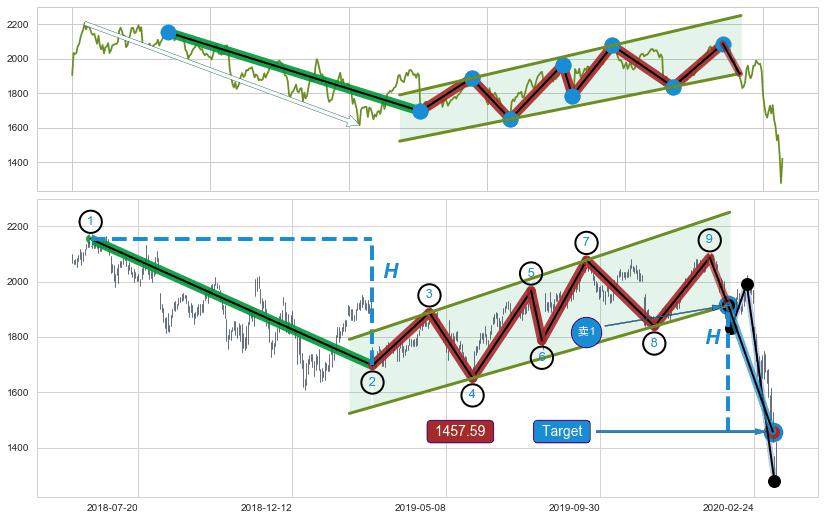➣ 最小中继整理跌幅→𝐇: 456.74 (𝐇旗杆的长度:旗杆起点→顶点)