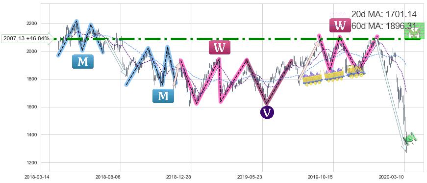 ♞ 20日均线:1701.14,60日均线:1896.31→ 快线<慢线