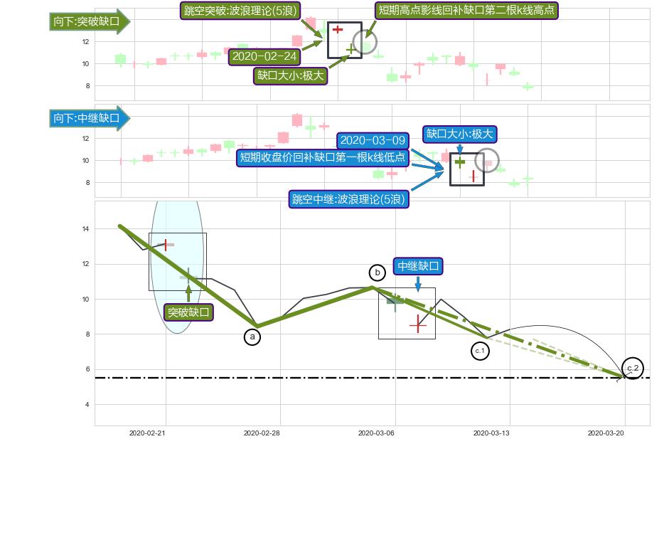 ➣ 中继缺口在突破缺口后再次向下跳空,趋势得到加固