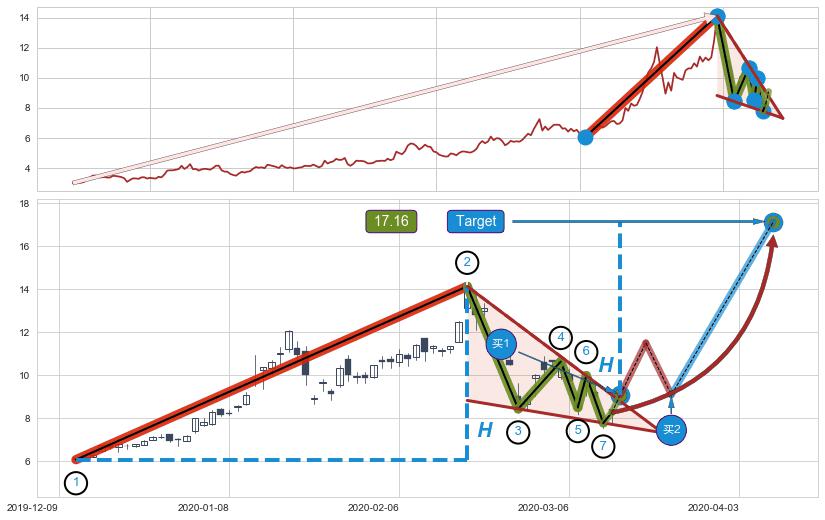 ➢ 最小中继整理涨幅→𝐇: 8.07 (𝐇楔型旗杆的长度:楔型起点→顶点)
