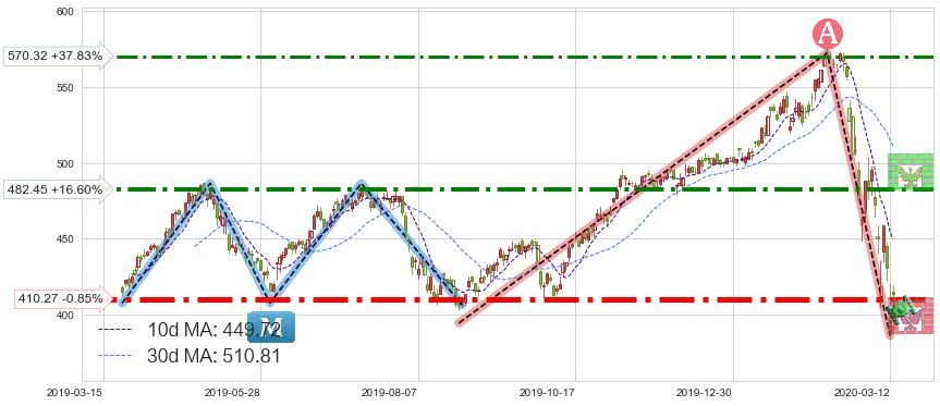 ♘ 阻力价格位482.45,可信任强度77.75%,距离最后交易2020-03-13形成的收盘价格413.78相差 +16.60%