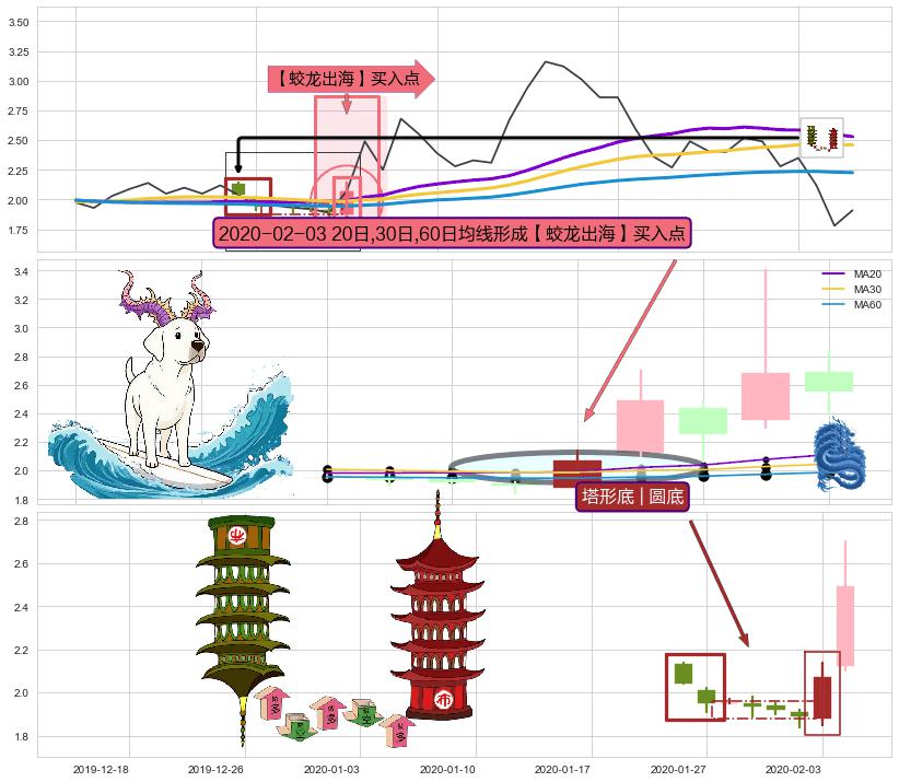 | 2 🅚:【蛟龙出海】买入点 ➕ ☯️:缠论买卖点下降缠:临近3买-猜想击穿突破3买后延续上涨趋势(大周期趋势均值回复后小周期持续趋势跟踪) ☞ 看多信号 ⇥ 【均线】交织【图形】⇥ 综合量化分数: 58 | > |