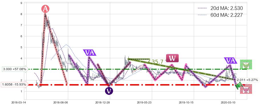 ♘ 阻力价格位3.000,可信任强度67.01%,距离最后交易2020-03-13形成的收盘价格1.9100相差 +57.08%
