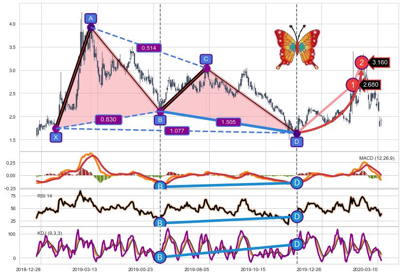 ➣ 已完成【蝴蝶】形态起点X: 2019-01-17, 终点D: 2019-11-22, 共216交易日