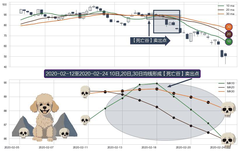 形态多维评估: ⚀ 2020-02-13-日至2020-02-24-日显现 10日-20日-30日均线 【死亡谷】卖出点 看空信号,后市看跌,卖出