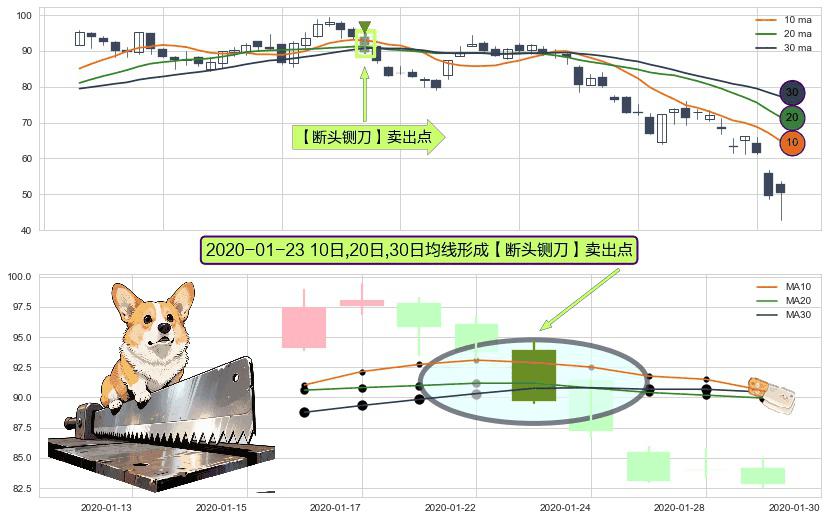 形态多维评估: ⚀ 2020-01-23日显现 10日-20日-30日均线 【断头铡刀】卖出点 看空信号,后市看跌,卖出