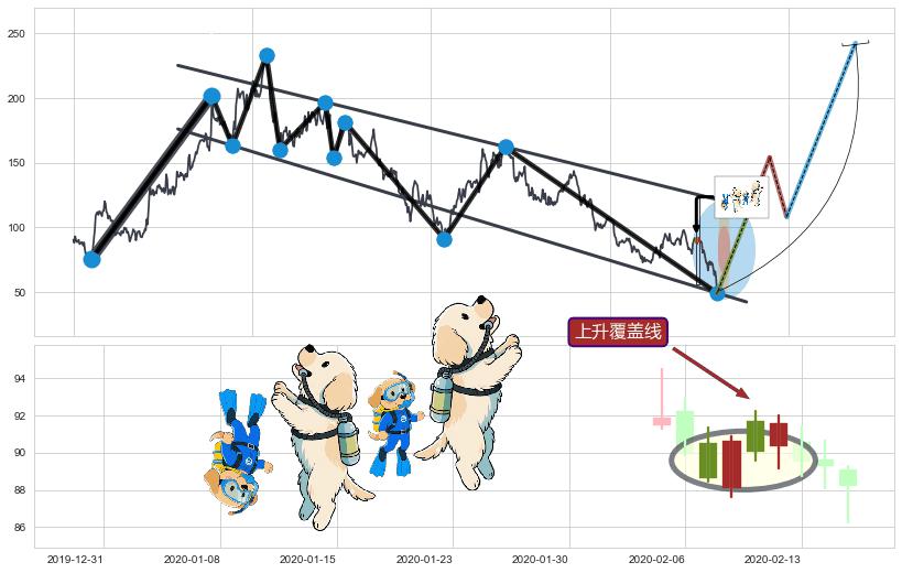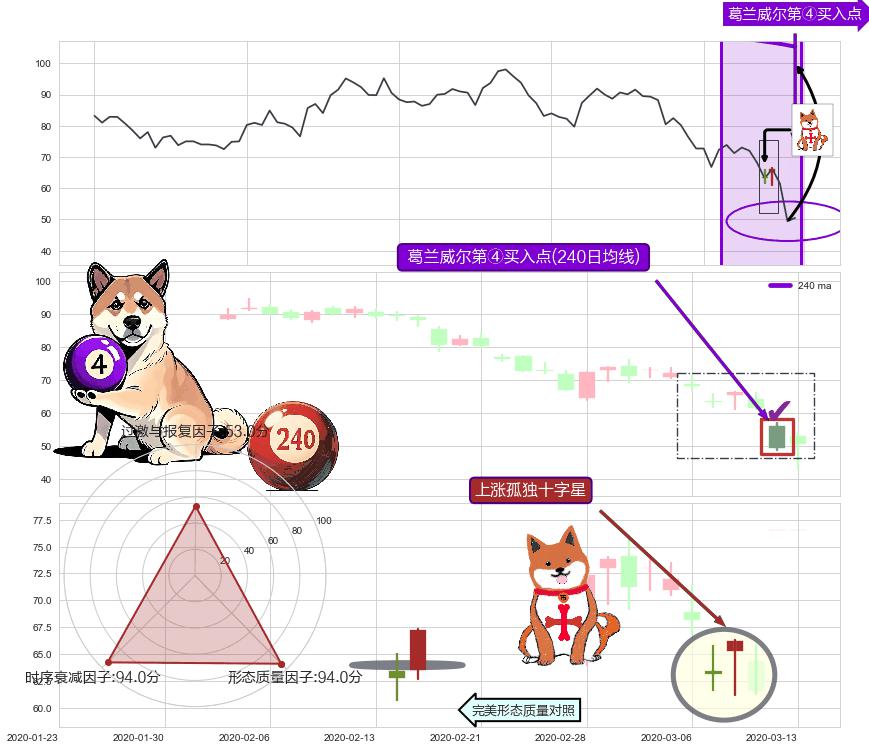 | 3 🅚:上涨孕十字星 ➕ 🎢:葛兰威尔第④买入点买入点信号形成后,猜想后续走势持续反弹上升(均值回复) ☞ 看多信号 ⇥ 【均线】交织【🅚线】⇥ 综合量化分数: 51 | > |