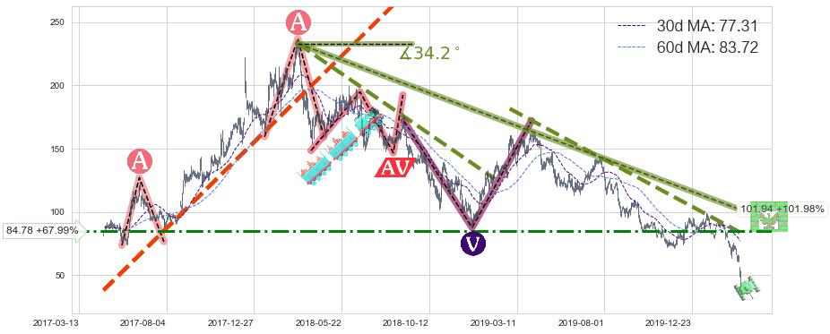 ♘ 阻力价格位84.78,可信任强度69.03%,距离最后交易2020-03-13形成的收盘价格50.47相差 +67.99%