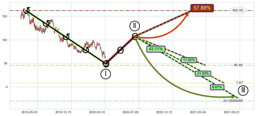 ➢ 高概率大级别循环下跌浪被破坏,反转向上(突破5浪起点)概率57.89%