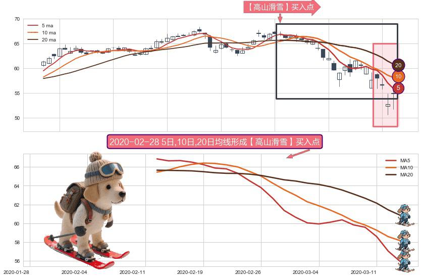 形态多维评估: ⚀ 2020-02-12日-2020-03-13日显现 5日-10日-20日均线 【高山滑雪】买入点 看多信号,后市看涨,买入