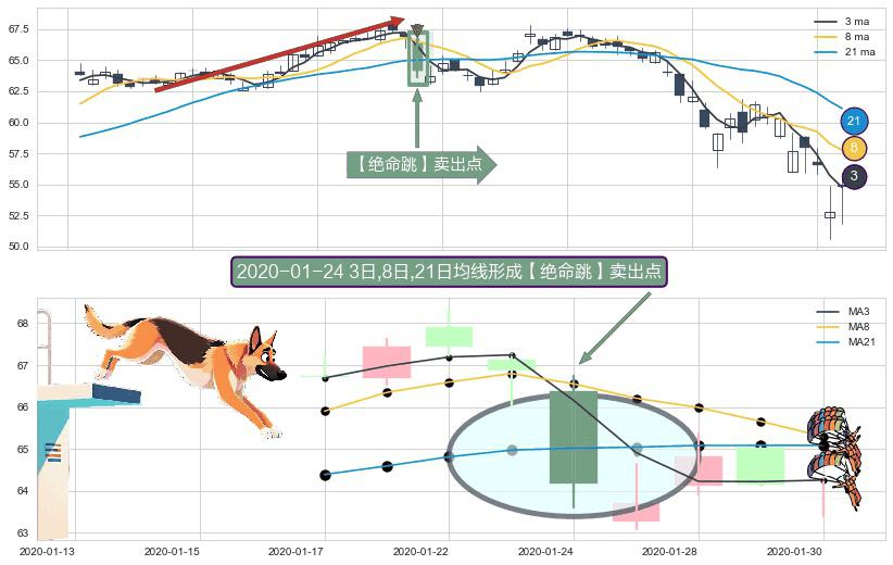 形态多维评估: ⚀ 2020-01-24日显现 3日-8日-21日均线 【绝命跳】卖出点 看空信号,后市看跌,卖出