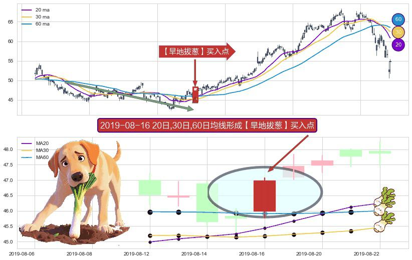 形态多维评估: ⚀ 2019-08-16日显现 20日-30日-60日均线 【旱地拔葱】买入点 看多信号,后市看涨,买入