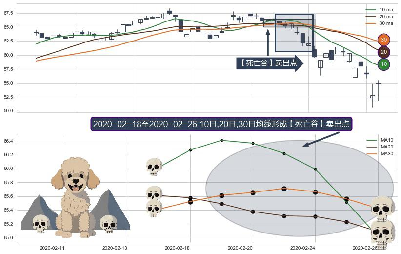 ⚂ 【死亡谷】卖出点 由MA10均线下穿MA20均线和MA30均线,MA20均线下穿MA30均线形成