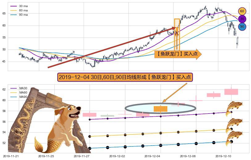 形态多维评估: ⚀ 2019-12-04日显现 30日-60日-90日均线 【鱼跃龙门】买入点 看多信号,后市看涨,买入