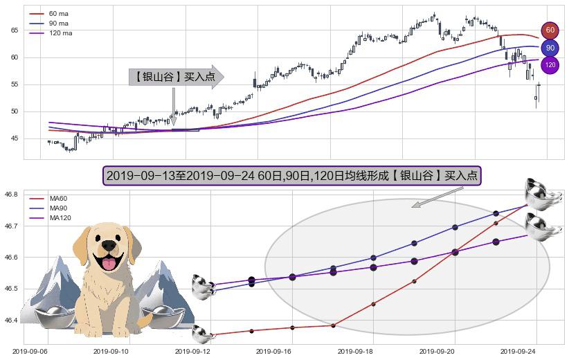 形态多维评估: ⚀ 2019-09-16-日至2019-09-24-日显现 60日-90日-120日均线 【银山谷】买入点 看多信号,后市看涨,买入