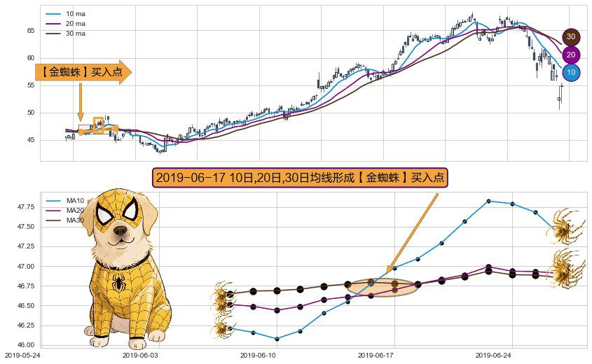 形态多维评估: ⚀ 2019-06-17日显现 10日-20日-30日均线 【金蜘蛛】买入点 看多信号,后市看涨,买入