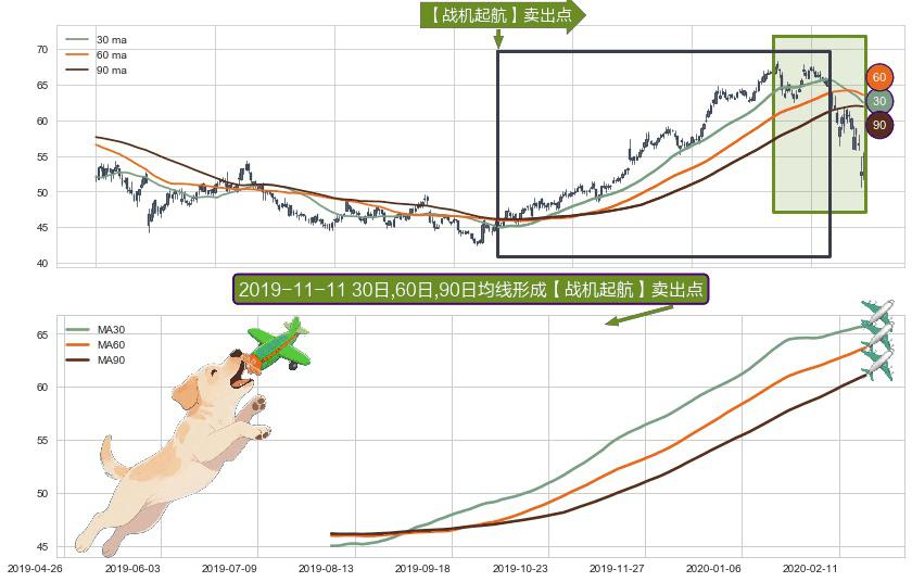 形态多维评估: ⚀ 2019-08-05日-2020-02-21日显现 30日-60日-90日均线 【战机起航】卖出点 看空信号,后市看跌,卖出