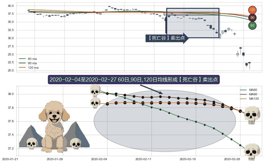 形态多维评估: ⚀ 2020-02-05-日至2020-02-27-日显现 60日-90日-120日均线 【死亡谷】卖出点 看空信号,后市看跌,卖出