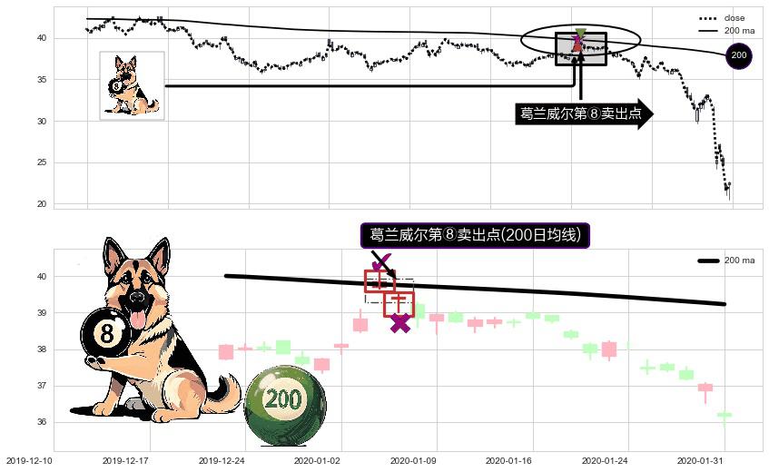形态多维评估: ⚀ 2020-01-07-日显现 葛兰威尔均线 200日均线 第⑧卖出点 下降趋势的中继信号,后市看跌,卖出信号