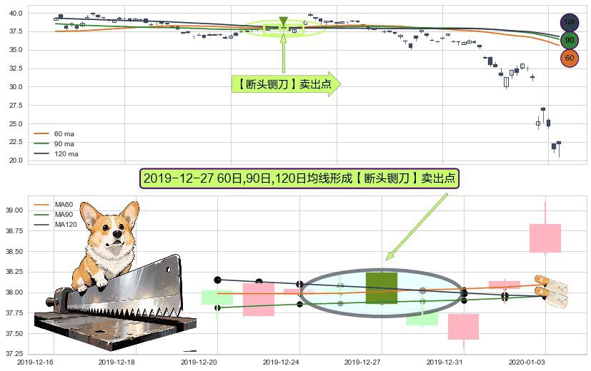 形态多维评估: ⚀ 2019-12-27日显现 60日-90日-120日均线 【断头铡刀】卖出点 看空信号,后市看跌,卖出