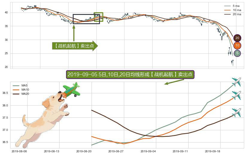 形态多维评估: ⚀ 2019-08-20日-2019-09-20日显现 5日-10日-20日均线 【战机起航】卖出点 看空信号,后市看跌,卖出