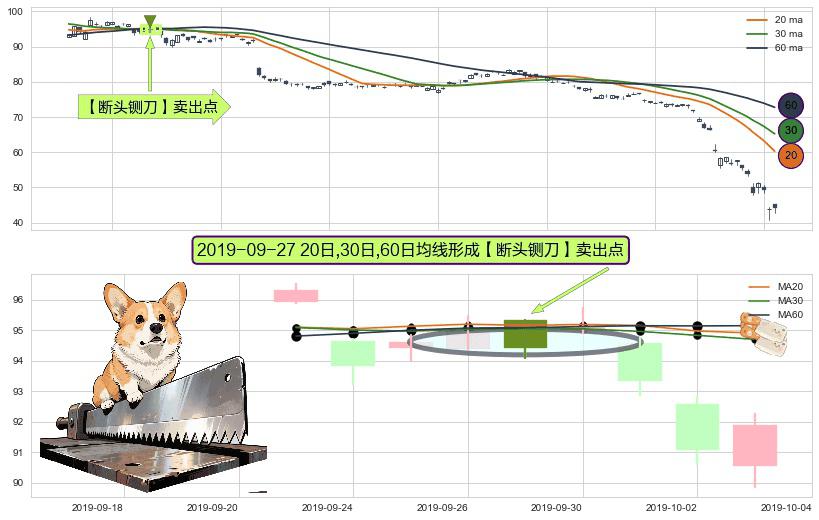 形态多维评估: ⚀ 2019-09-27日显现 20日-30日-60日均线 【断头铡刀】卖出点 看空信号,后市看跌,卖出
