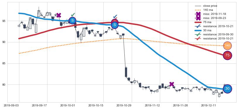 下跌趋势2019-09-03-2019-12-16,均线75, 30确认关键阻力2处