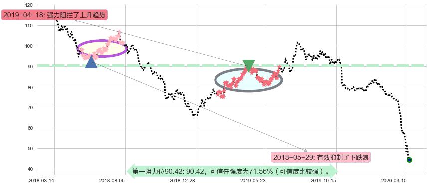 ♘ 阻力价格位90.42,可信任强度71.56%,距离最后交易2020-03-13形成的收盘价格44.29相差 +104.16%