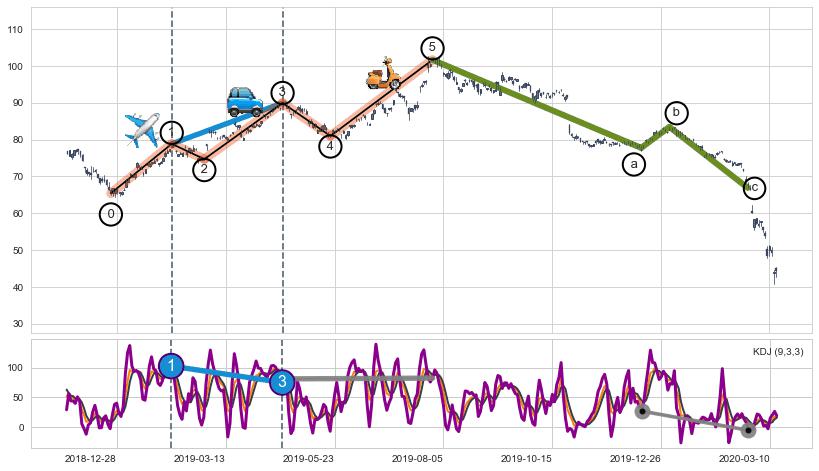 ➣ a,c调整浪KDJ走势未出现明显背离