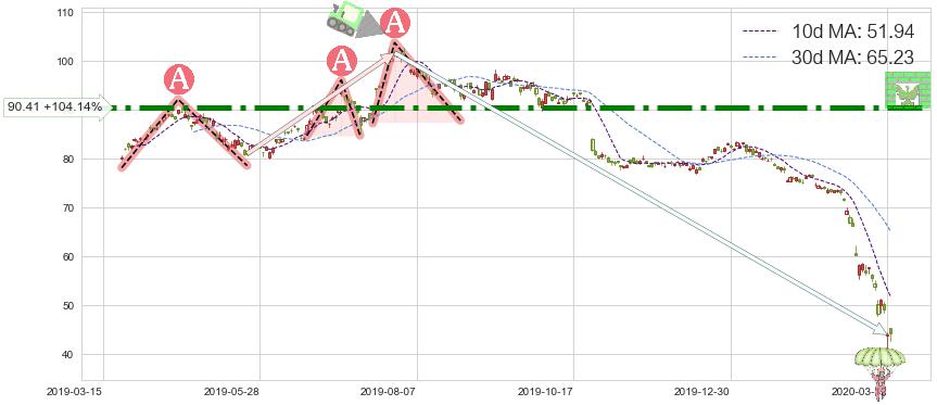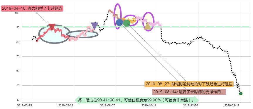 ♘ 阻力价格位90.41,可信任强度99.00%,距离最后交易2020-03-13形成的收盘价格44.29相差 +104.14%