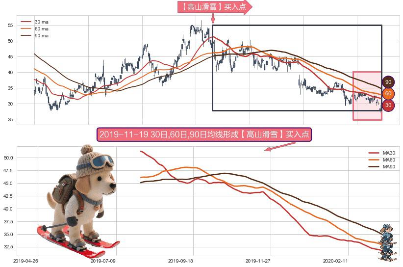 形态多维评估: ⚀ 2019-07-31日-2020-03-13日显现 30日-60日-90日均线 【高山滑雪】买入点 看多信号,后市看涨,买入