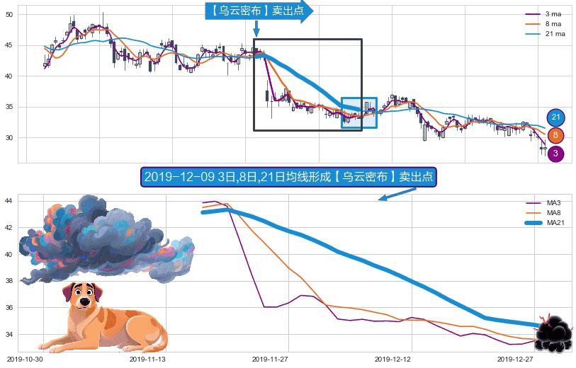形态多维评估: ⚀ 2019-11-18日-2019-12-30日显现 3日-8日-21日均线 【乌云密布】卖出点 看空信号,后市看跌,卖出
