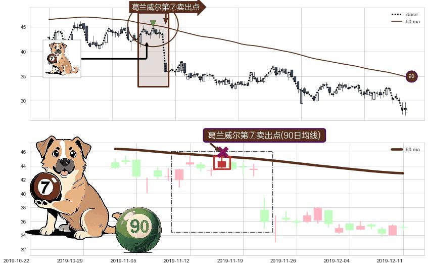 形态多维评估: ⚀ 2019-11-15-日显现 葛兰威尔均线 90日均线 第⑦卖出点 下降趋势的中继信号,后市看跌,卖出信号