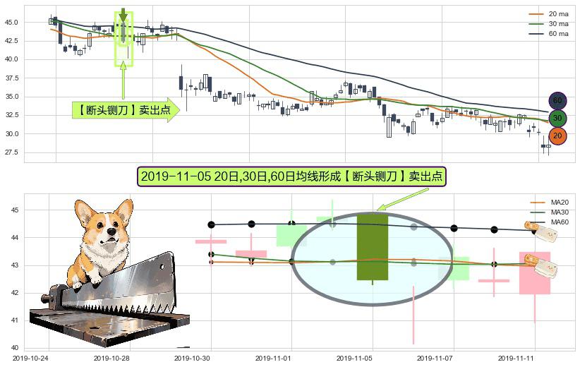 形态多维评估: ⚀ 2019-11-05日显现 20日-30日-60日均线 【断头铡刀】卖出点 看空信号,后市看跌,卖出