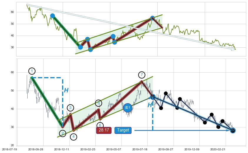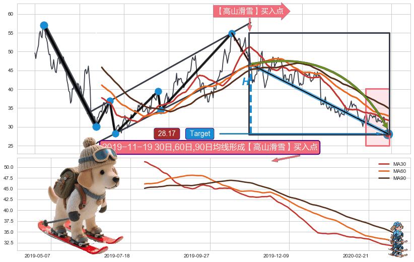 ➢ AI预测: 假定反转启动后, 第❷目标位置(2020-10-28, 42.60)