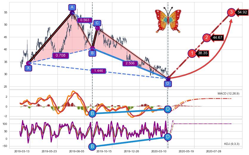➣ 已完成【蝴蝶】形态起点X: 2019-03-08, 终点D: 2020-03-12, 共256交易日