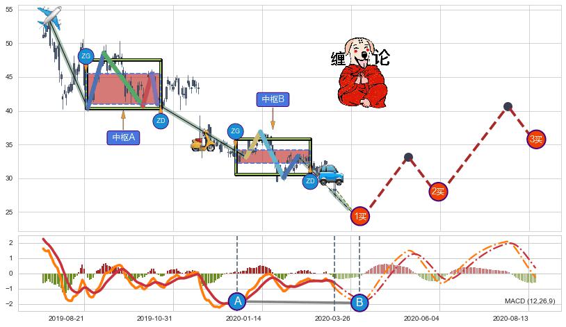➣ 【未完成】缠论 起点:2019-07-24, 完成第1中枢A,完成第2中枢B,到达2020-03-13