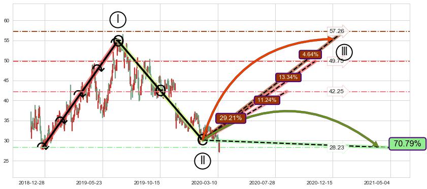 ➣ AI预测: 假定反转启动后, 第❸目标位置(2021-01-12, 54.92)