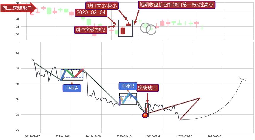 ➣ 收盘价(2020-02-07: 31.64 )→回踩→第一根k线高点(2020-02-03: 32.04 )