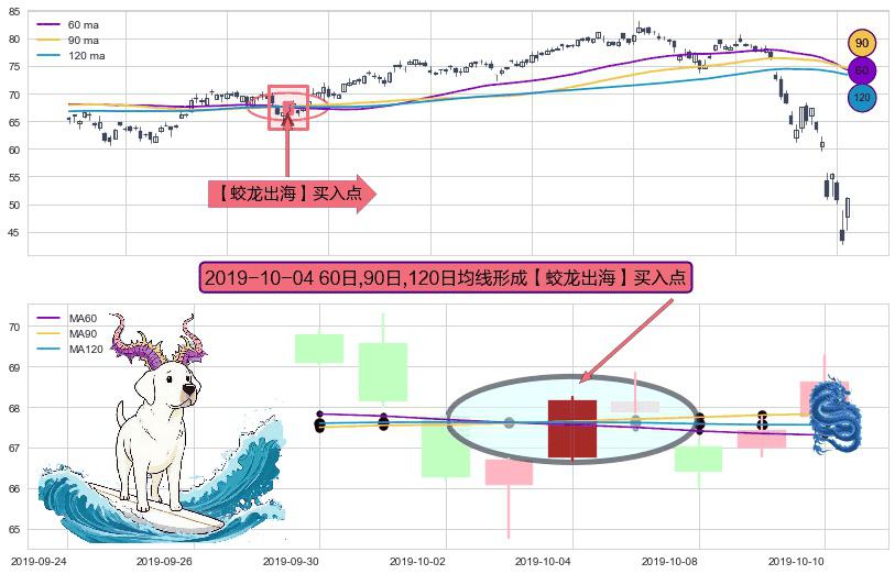 ⚁ 短期均线MA60上穿中期均线MA90形成的交叉是标准 黄金交叉