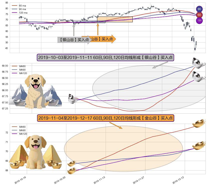 ⚃ 2019-11-05-日至2019-12-17-日显现 60日-90日-120日均线 【金山谷】买入点 其再次确认了买入信号,可靠性更强,买入