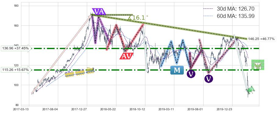 ♘ 阻力价格位136.96,可信任强度81.35%,距离最后交易2020-03-13形成的收盘价格99.64相差 +37.45%