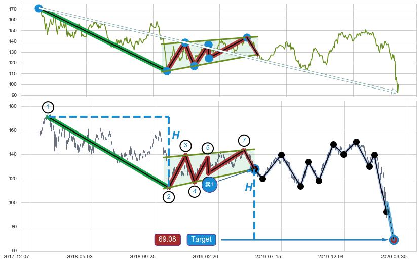 ➣ D点拟合预测价格63.43,距离最后交易收盘价格99.64相差 -36.34%