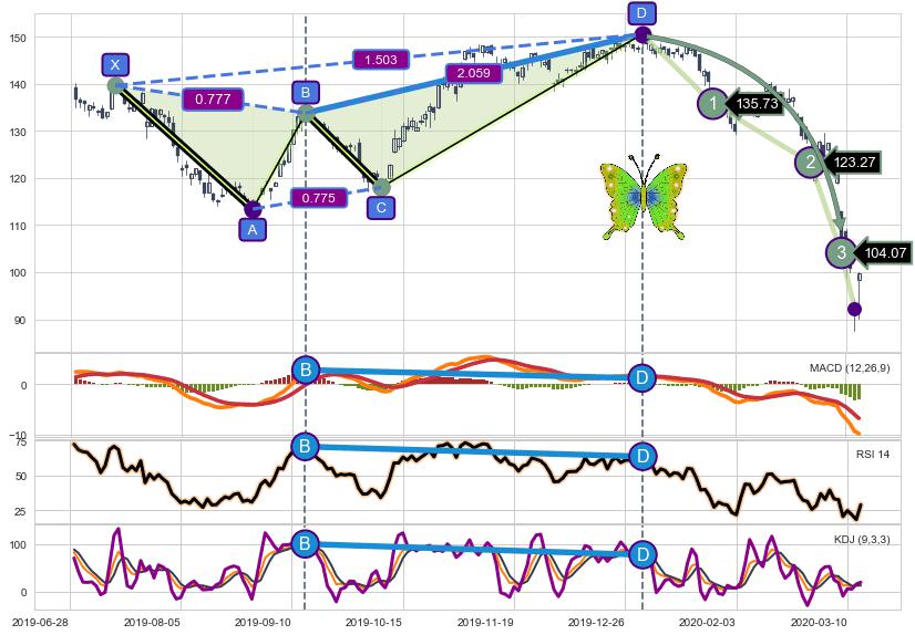 ➣ 已完成【蝴蝶】形态起点X: 2019-07-15, 终点D: 2020-01-02, 共120交易日