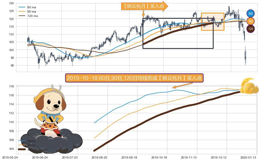 ⚀ 2019-08-07日-2020-01-02日显现 60日-90日-120日均线 【烘云托月】买入点 看多信号,后市看涨,买入