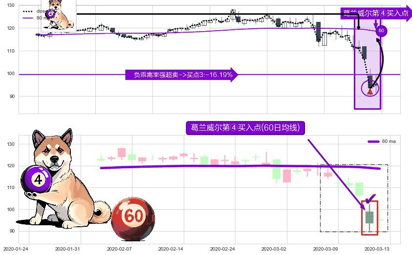 ⚀ 2020-03-12-日显现 葛兰威尔均线 60日均线 第④买入点 下降趋势均值回复的短线反弹信号,后市看涨,买进信号