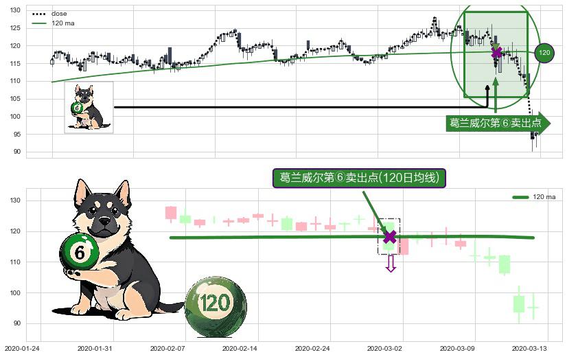 ⚀ 2020-02-28-日显现 葛兰威尔均线 120日均线 第⑥卖出点 走势反转见顶信号,后市看跌,卖出信号
